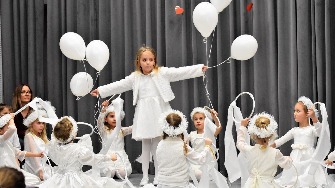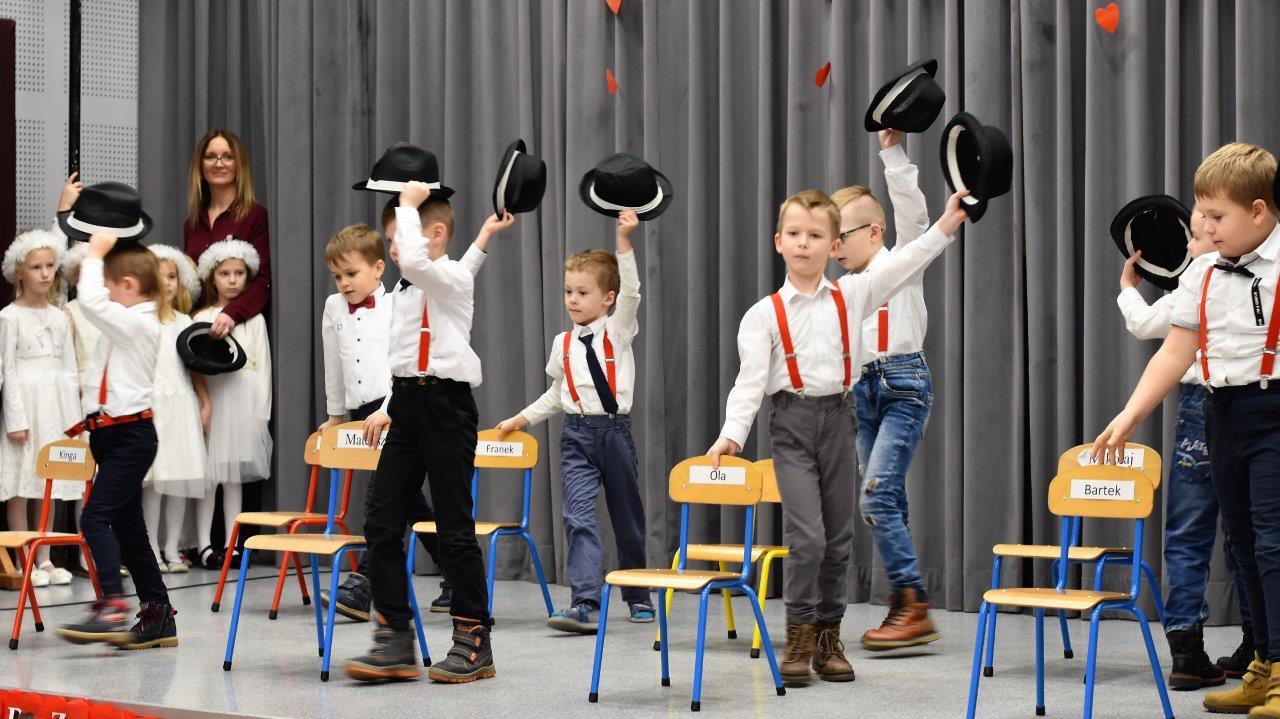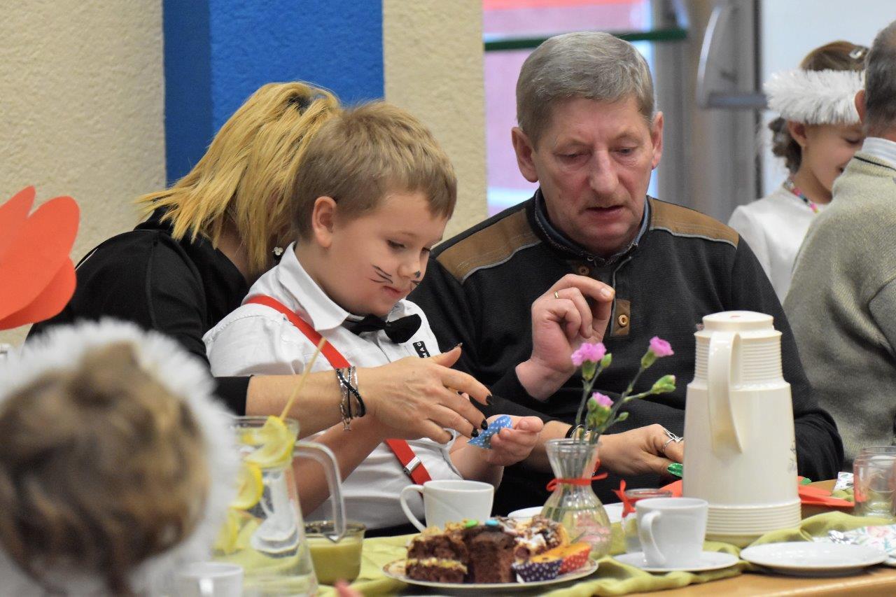 Piosenki, żywiołowy taniec chłopców z kapeluszami, a dziewczynek – ze wstążkami, do tego wierszyki, abecadło pełne dobrych życzeń dla dziadków i scenka kabaretowa – przedszkolaki postarały się, aby przedstawienie dla dziadków było wyjątkowe! Oklaskom nie było końca, a dziadkowie dostali od wnucząt wielkie buziaki, uściski i czerwone serca…