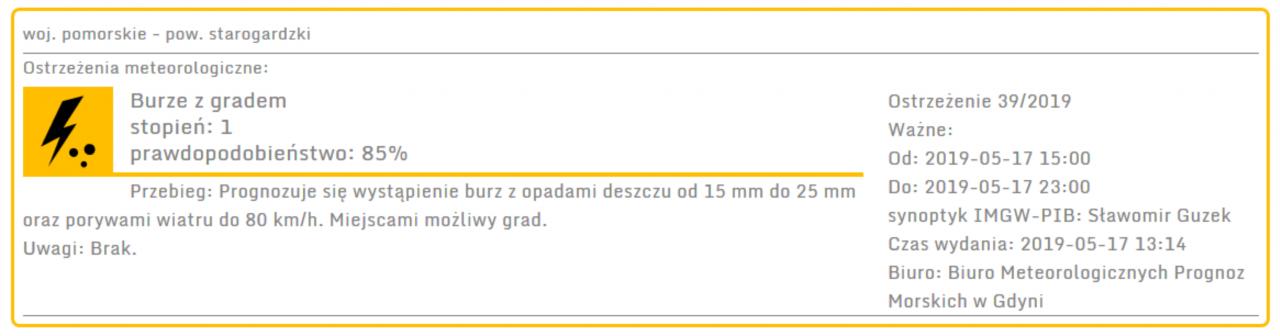 OSTRZEŻENIE POGODOWE NA PIĄTEK 17 MAJA