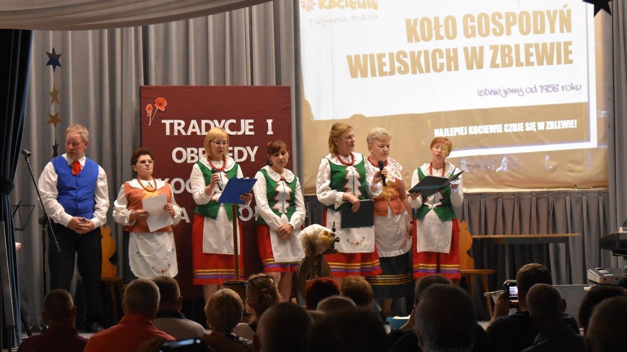W trakcie spotkania, które odbyło się w Gminnym Ośrodku Kultury w Zblewie, członkowie KGW Zblewo zaprezentowali gościom nasz region. W bogatym programie artystycznym znalazło się m.in. wspólne odśpiewanie hymnu kociewskiego, opowieść o historii Kociewia, a także gadki i piosenki po kociewsku, w tym m.in. „Jest w powiecie taka gmina” czy „Jezdom Kociewiakiem”. Był też pokaz dawnego kunsztu kociewskiego pt. „Kociewie jak było pijerwy”, a nasza malarka Jolanta Pawłowska – siedząc wśród gości - malowała kolejny obraz. Gospodarzami sceny była Barbara Wiśniewska oraz Mirosław Umerski.