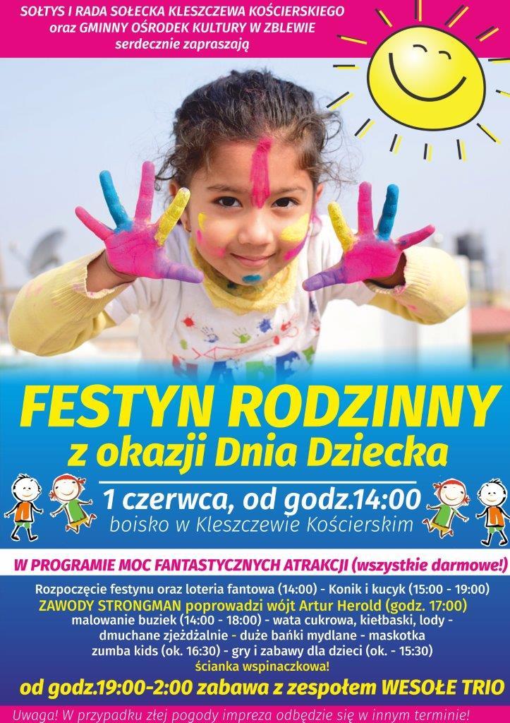 Wielkie świętowanie zaczynamy już 31 maja (tj. w piątek) w Zblewie. Kolejnego dnia tj. 1 czerwca (sobota) zapraszamy na festyny rodzinne do Kleszczewa Kościerskiego, Borzechowa i Pinczyna oraz na festyn wędkarski nad jeziorem Wielkim w Strudze. A w niedzielę (2 czerwca) będziemy bawić się w Jeziercach, Piesienicy, Bytoni i w Semlinie.