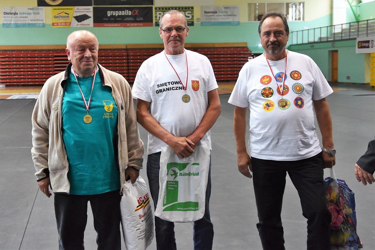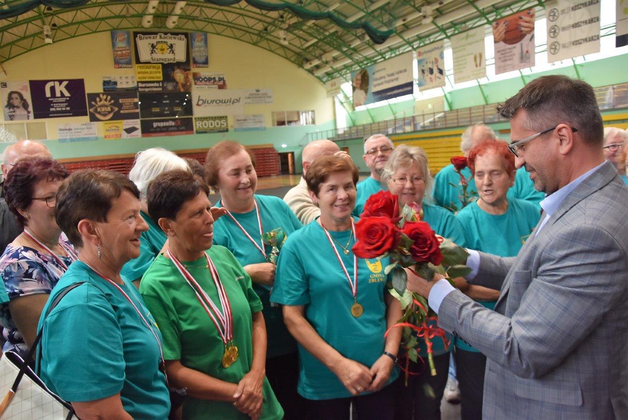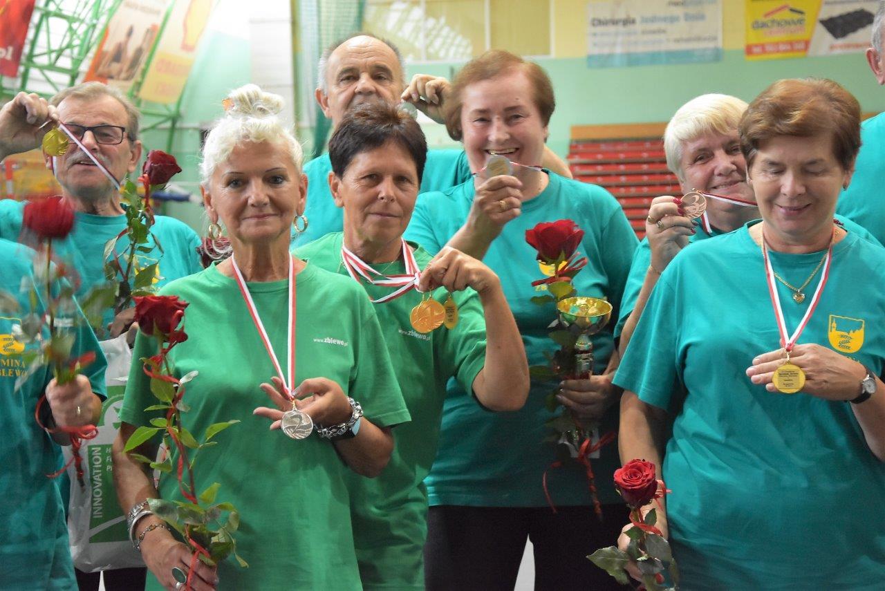 A było co świętować - nasi zawodnicy zdobyli prawdziwy deszcz medali – złotych, srebrnych i brązowych! Wśród laureatów spartakiady mieliśmy też prawdziwych multimedalistów – Ewa Ossowska ze Zblewa wywalczyła aż 3 złote medale, a Krystyna Kamińska z Pinczyna - 2 złote i 1 srebrny (za taniec). Nasi seniorzy pięknie pokazali, że wiek nie ma znaczenia, bo chcieć - to móc! Podczas spartakiady wręczono specjalne puchary dla najstarszej zawodniczki i zawodnika – ten ostatni trafił do rąk Henryka Wałaszewskiego z Pinczyna, który mając prawie 88 lat - wspaniale reprezentował swoją drużynę!