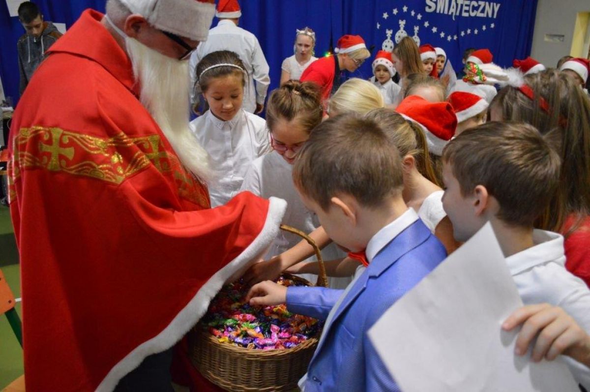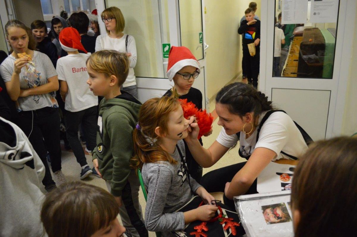 Kiermasz poprzedziły występy artystyczne uczniów, którzy zaprezentowali m.in. układy taneczne, piosenki o tematyce świąteczno-zimowej oraz grę na akordeonie. Zaśpiewano też kolędy, a potem przybył św. Mikołaj, który wszystkich częstował cukierkami. Po zakończeniu występów rozpoczęło się wielkie handlowanie na stoiskach, na których można było nabyć wszystko, co związane jest z Świętami Bożego Narodzenia, m.in. stroiki, wianki, ozdoby choinkowe, pierniczki itp. Każdy, nawet najbardziej wybredny kupujący mógł znaleźć coś siebie. Stragany zorganizowały wszystkie klasy od I-VIII oraz przedszkole wraz z wychowawcami i rodzicami. Działał również punkt malowania twarzy, foto-budka oraz kawiarenka „Caffe”. Cieszymy się bardzo, że kiermasz zorganizowany w naszej szkole przyciągnął wielu rodziców, dziadków oraz mieszkańców naszej miejscowości i nie tylko. Emocje jeszcze nie opadły, a mu czekamy już na kolejny kiermasz świąteczny za rok!