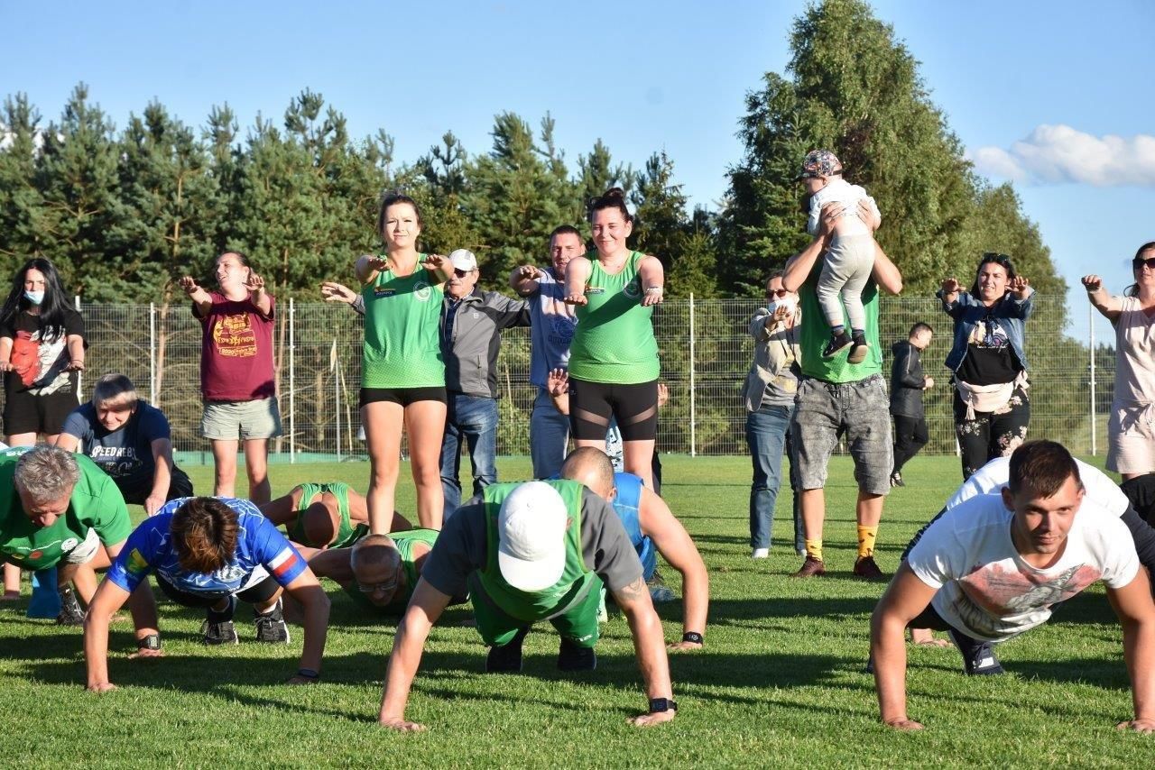 Sportowcy nie zawiedli i licznie stawili się wczoraj na borzechowskim stadionie. Dla Szymka wspólnie „pompowali” m.in. biegacze z Sekcji Lekkoatletycznej KS Sokół Zblewo oraz zawsze pełne uśmiechu Morsy Zblewo, a także piłkarze i działacze sportowi z naszego KS Sokół Zblewo i GROM Kleszczewo, liczne grono kibiców, druhny i druhowie z OSP Karolewo, a także przyjaciele małego Szymka. Cieszymy się, że w wydarzeniu wzięło udział także tak wiele dzieci! A wszystkich wspierał sam Szymek, który wraz z rodzicami pojawił się wczoraj na boisku. Wspólne „pompowanie” poprowadziła Ewa Ossowska, która z właściwą sobie energią i radością tak wszystkich zmotywowała, że zamiast jednej serii 10 pompek nasi sportowcy zrobili… trzy serie! „ Z całego serca dziękujemy za tę piękną sportową postawę i za świadectwo wrażliwości i społecznego zaangażowania. Za Wasze dobre serca! Jesteśmy dumni z naszych sportowców. Mimo wakacji, zebrała się nas naprawdę spora grupa. I każdy przyszedł tu pełen dobrych emocji, uśmiechu i chęci pomocy. Na Was zawsze można liczyć…” – mówił Krzysztof Włoch, dziękując wszystkim za udział w challengu.