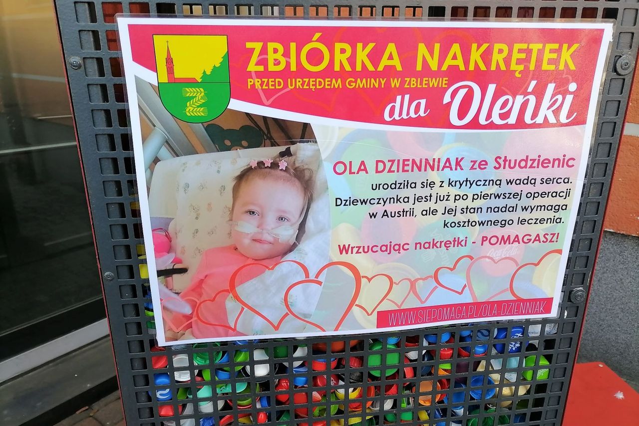 ZBIÓRKA NAKRĘTEK PRZED URZĘDEM GMINY W ZBLEWIE DLA OLEŃKI DZIENNIAK