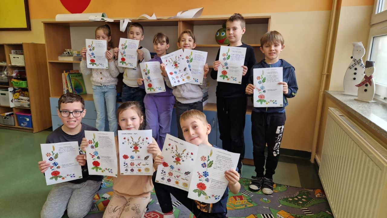- kolorowanie wzorów haftu kociewskiego (klasy I-III)