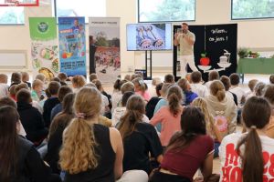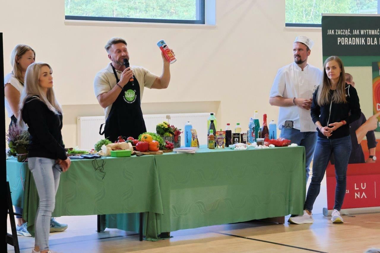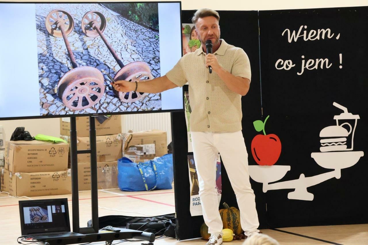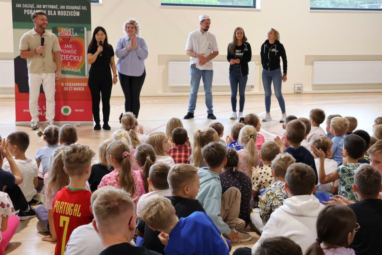 Podczas spotkania Leszek Klimas przekonywał dzieci i młodzież, jak ważne jest mieć marzenia i dążyć do celu, jak wprowadzić zdrowe nawyki żywieniowe, pokochać ruch, zadbać o emocje i relacje! Potem głos zabrali dietetycy, którzy przekazali dzieciom fachową wiedzę na temat zdrowej żywności. Ta część spotkania minęła pod hasłem: przetworzona żywność i cukier ukryty w produktach kontra zdrowe, pełnowartościowe kanapki. Wspólnie przygotowano zdrową kanapkę, a na dzieci czekały liczne konkursy i zagadki. Z nagrodami rzecz jasna. Na koniec – wspólny trening, poprzedzony wspaniałą rozgrzewką poprowadzoną przez bytońskich nauczycieli, którzy porwali do wspólnych ćwiczeń po prostu wszystkich! Cała sala - tańczyła, podskakiwała i świetnie się bawiła.