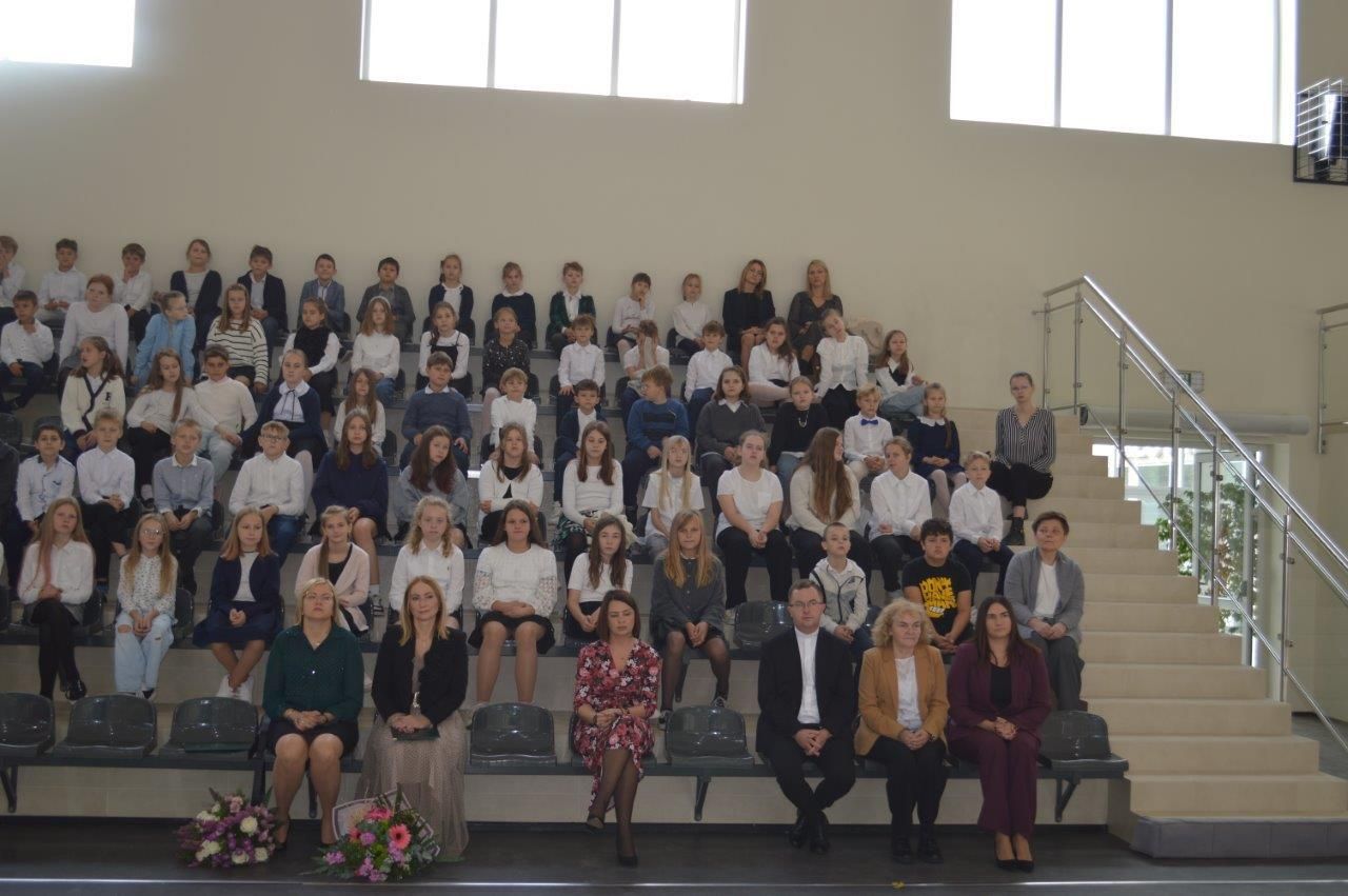 Na tę uroczystość przybyli zaproszeni goście: Pani Malwina Deska – kierownik Centrum Usług Wspólnych w Gminie Zblewo, przedstawicielka  Rady Rodziców Pani Daniela Chłusewicz oraz nauczyciele, pracownicy szkoły i uczniowie.
